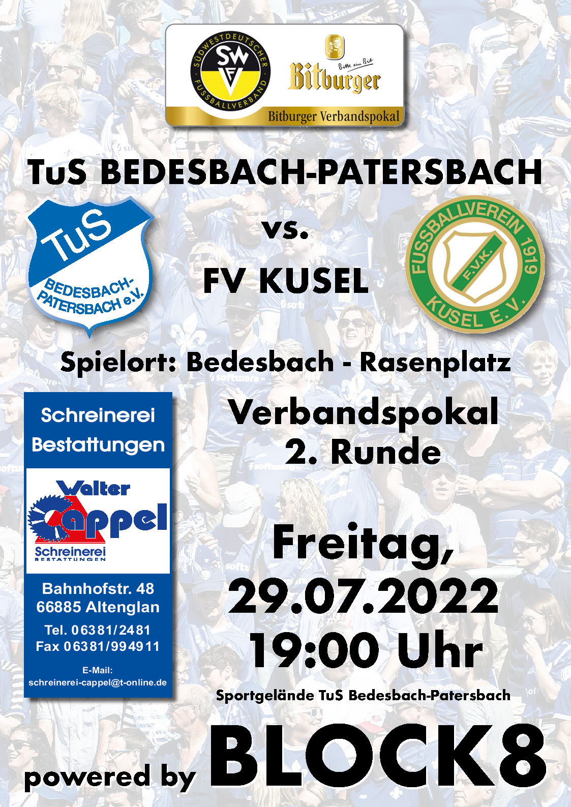 Der FV Kusel hat das Heimrecht fürs Pokalspiel getauscht. Das Spiel findet jetzt bereits am Freitag um 19:00 Uhr in Bedesbach statt.