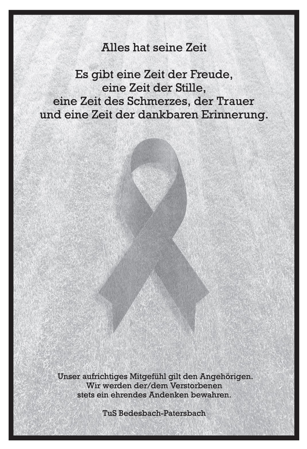 Der Vorstand des TuS Bedesbach-Patersbach kann Folgendes bekannt geben: