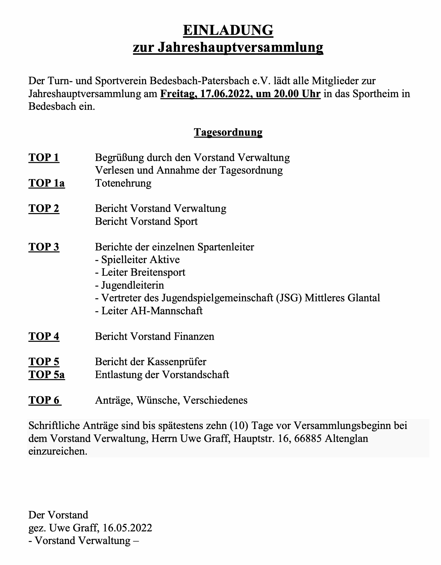 Die Jahreshauptversammlung des TuS am 17.06.2022