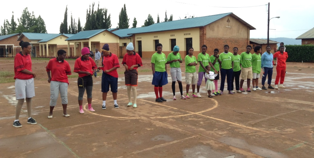 Die Mädchen, die das rote Trikot tragen, sind die Studentinnen , die anderen im grünen Trikot sind in der Sekundarstufe, darunter sind viele Patenkinder aus Ihrem Programm."