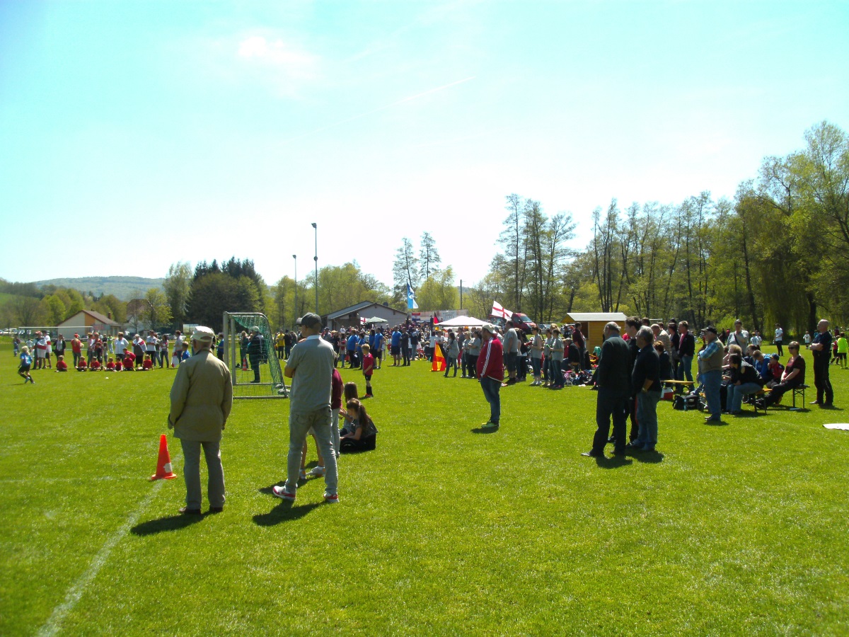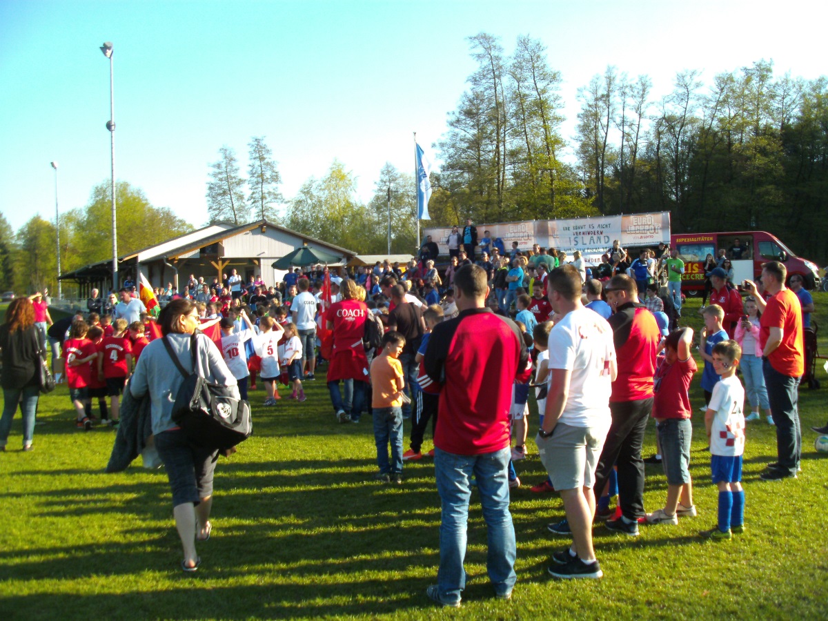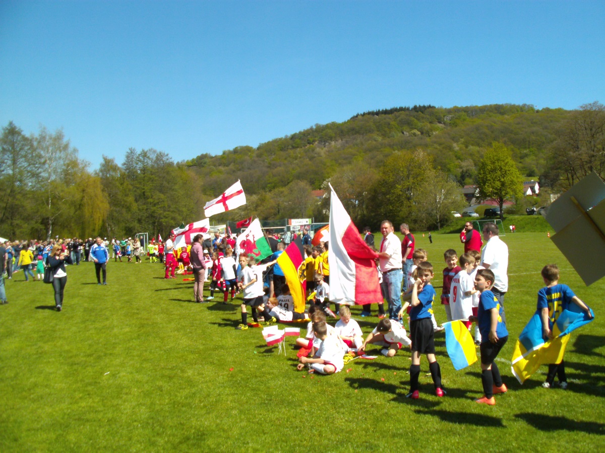Strahlender Sonnenschein, gute äußere Bedingungen und eine topmotivierte TuS-Mannschaft, die gewillt war, ein guter Gastgeber zu sein. Am Vatertag fand im Glantalstadion die EM für Jugendmannschaften analog zum Turnier in Frankreich statt. 24 Mannschaften -also ca. 250 Kinder- spielten ab 12.00 Uhr die beiden Finalisten aus. Über 500 Zuschauer, Eltern, Großeltern und Verwandte der Kinder füllten den Platz um die beiden Spielflächen.