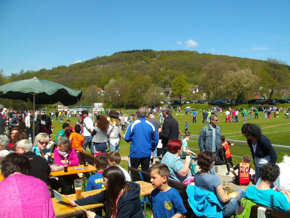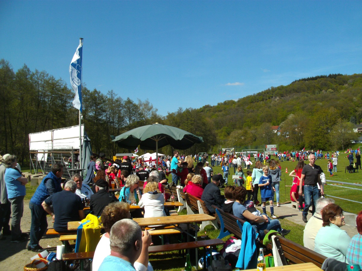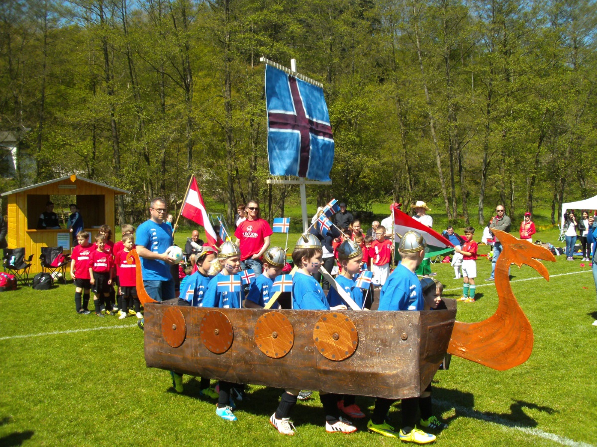 Strahlender Sonnenschein, gute äußere Bedingungen und eine topmotivierte TuS-Mannschaft, die gewillt war, ein guter Gastgeber zu sein. Am Vatertag fand im Glantalstadion die EM für Jugendmannschaften analog zum Turnier in Frankreich statt. 24 Mannschaften -also ca. 250 Kinder- spielten ab 12.00 Uhr die beiden Finalisten aus. Über 500 Zuschauer, Eltern, Großeltern und Verwandte der Kinder füllten den Platz um die beiden Spielflächen.