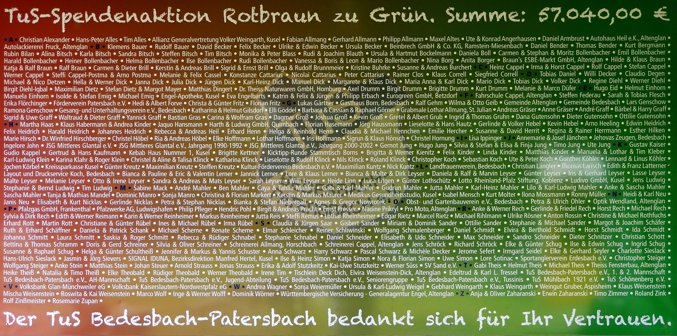 Besonderer Dank geht ausdrücklich an alle Spender, die mit der TuS Spendenaktion "Rotbraun zu Grün" sagenhafte 57 040 € zusammen brachten!